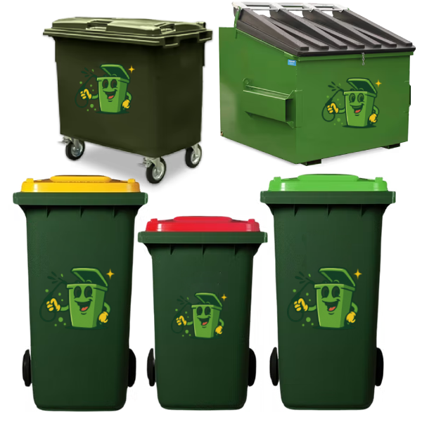 We clean standard 120L, 240L, and 360L domestic wheelie bins, as well as larger 660L and 1100L commercial bins. We do not clean steel bins or bins that do not have wheels.